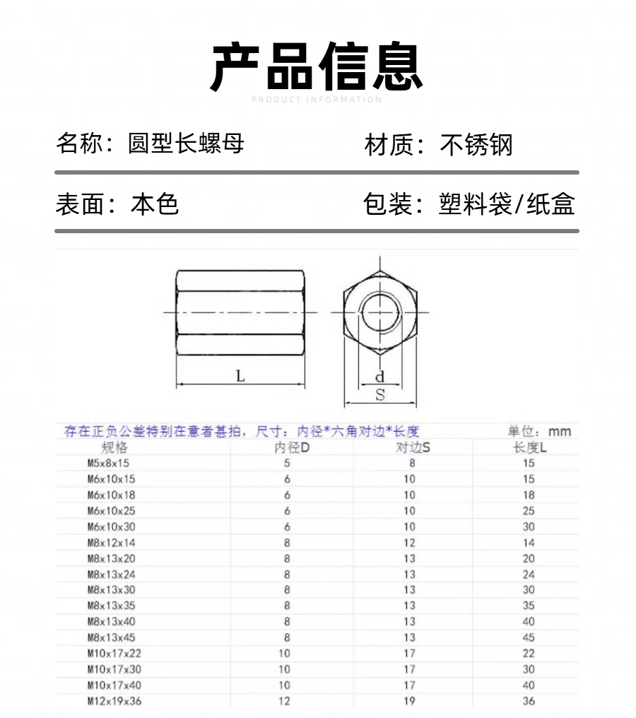 圆型长螺母